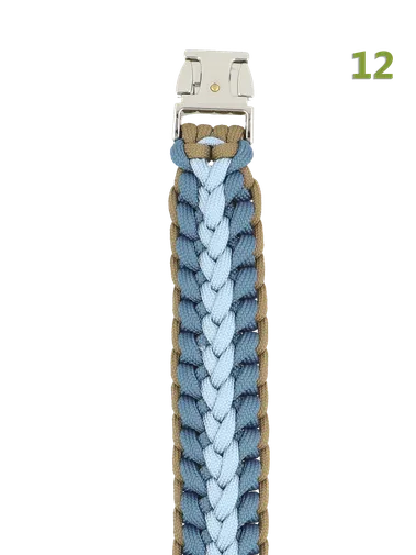 Als je de fototutorial volgt en deze knoop met paracord 550 type III maakt, zal de knoop ongeveer 3,8 cm breed en 1,4 cm dik worden. In de MatchMaker kun je zien hoeveel meter paracord je nodig hebt en kun je kleuren uitproberen voor je project.